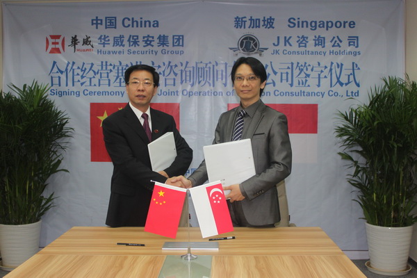 1月26日,經(jīng)山東華威保安集團(tuán)與新加坡JK咨詢控股公司協(xié)商,共同達(dá)成合作經(jīng)營塞諾安公司業(yè)務(wù)。北京塞諾安咨詢顧問公司是華威集團(tuán)全資子公司,主要從事安全風(fēng)險評估、商務(wù)咨詢、高端培訓(xùn)等業(yè)務(wù)。華威集團(tuán)常務(wù)副總裁楊中河、JK咨詢控股集團(tuán)總裁郭志豪出席簽字儀式。
