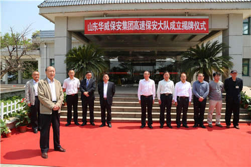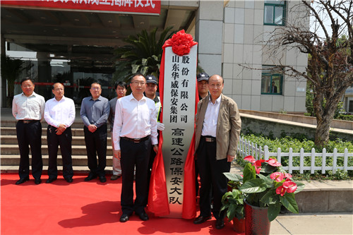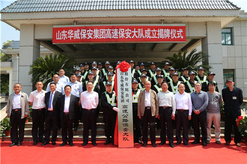 揭牌儀式上,泰安服務(wù)區(qū)李總、集團(tuán)荀董事長(zhǎng)共同為華威保安集團(tuán)高速公路保安大隊(duì)成立揭牌。