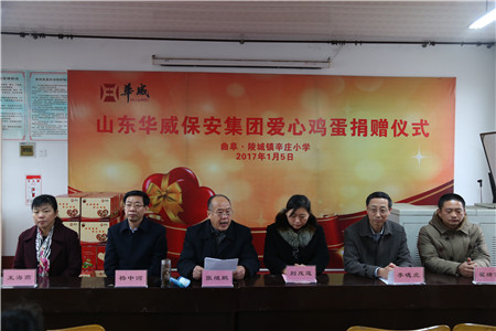 1月5日,冒著料峭的冬雨,華威全體員工堅守了七年的“愛心雞蛋”又如約來到了曲阜市陵城鎮(zhèn)莘莊小學。曲阜市關工委副主任、秘書長張繼鵬,陵城鎮(zhèn)有關領導,集團常務副總裁楊中河、黨總支副書記李曉虎參加了捐贈儀式,代表華威保安集團為小朋友們帶來了濃濃愛心。