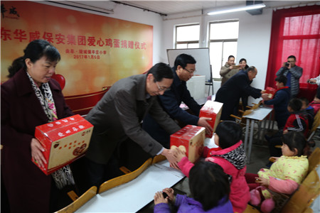 “愛心雞蛋工程”是集團公司于2010年發(fā)起的一項獻愛心工程,旨在踐行社會責任、關愛兒童成長,提倡讓孩子們每天能吃上一個雞蛋,使孩子們能夠健康成長?!皭坌碾u蛋工程”活動開展以來,廣大華威員工每個月都從自己不太多的工資中,拿出至少一元錢,奉獻自己的愛心。7年堅守,愛心延續(xù),華威共募集愛心雞蛋捐款15萬余元,使曲阜市南辛、吳村、王莊、石門山、防山、息陬、姚村、小雪、陵城的9個街道、76所小學的近3600多名小學生受益。同時集團又從中選出10名貧困家庭的兒童進行長期資助。