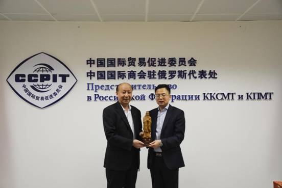 董事長(zhǎng)、總裁荀金慶一行還拜訪了中國(guó)國(guó)際貿(mào)易促進(jìn)委員會(huì)、中國(guó)國(guó)際商會(huì)駐俄羅斯代表處。貿(mào)促會(huì)首席代表徐金利先生與董事長(zhǎng)、總裁荀金慶就俄羅斯及周邊國(guó)家中資企業(yè)安保需求及安全問題進(jìn)行了深度的交流、溝通。